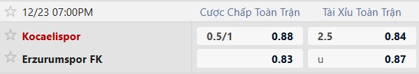 Thông tin tỷ lệ cược Kocaelispor vs Erzurumspor: