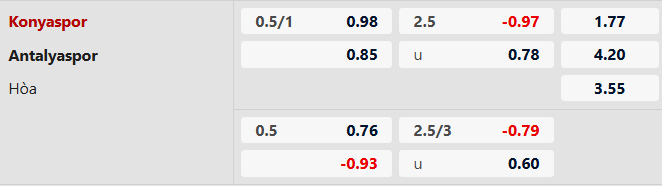 Thông tin tỷ lệ Konyaspor vs Antalyaspor: