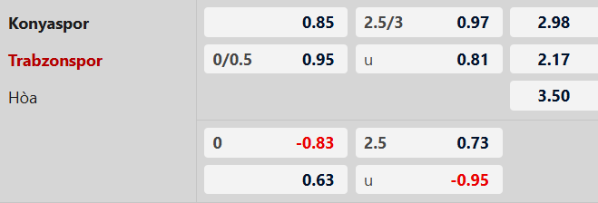 Thông tin tỷ lệ kèo Konyaspor vs Trabzonspor: