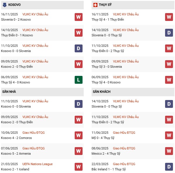 Thống kê phong độ Kosovo vs Thụy Sĩ: