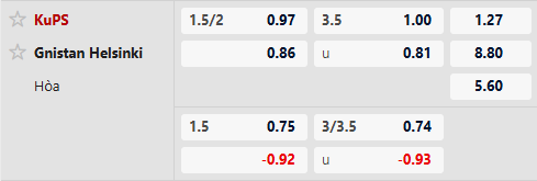 KuPS được đánh giá cao hơn rất nhiều ở trận này với kèo chấp -1 3/4 theo handicap. Với những gì 2 đội bóng này đang thể hiện, sẽ không bất ngờ nếu như Gnistan sẽ bị chủ nhà KuPS nghiền nát ở trận đấu đêm nay.
