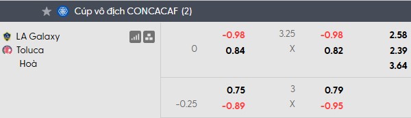 Mức kèo đồng banh cho thấy sự cân bằng giữa hai đội ở trận lượt về. Tuy nhiên, với lợi thế dẫn trước 2 bàn, Toluca có thể chủ động chơi phòng ngự phản công. LA Galaxy buộc phải dâng cao, điều này dễ khiến họ rơi vào bẫy của đối thủ. Với sự hiệu quả trong lối chơi, Toluca là lựa chọn đáng tin hơn.