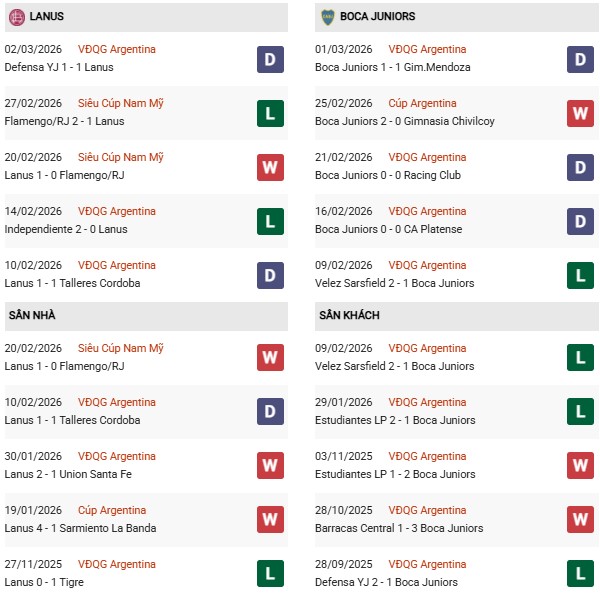Thống kê phong độ Lanus vs Boca Juniors: