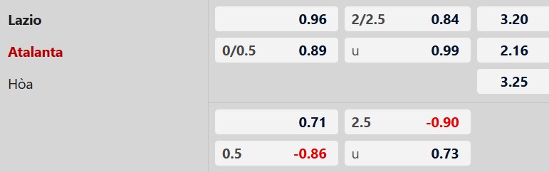 Thông tin tỷ lệ kèo Lazio vs Atalanta: