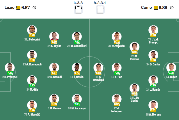 Lazio gần đây thi đấu không tốt. Theo thống kê, họ chỉ thắng được 1/5 trận đấu gần đây ở Serie A. Những kết quả kém ấn tượng ấy khiến đội bóng thành Rome tụt xuống vị trí thứ 9 tại bảng xếp hạng Serie A. Vì thế, Lazio rất muốn tận dụng lợi thế sân nhà để giành 3 điểm trước đối thủ Como nhằm cải thiện thứ hạng.