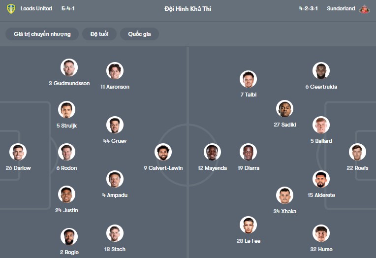 Hơn nữa, 7 lần gần nhất đối đầu với nhau, Leeds cũng nhỉnh hơn Sunderland khi thắng 2, thua 1 và hòa 4. Riêng 3 lần tiếp Sunderland gần đây trên thánh địa Elland Road, Leeds bất bại khi thắng 1 và hòa 2. Nhiều khả năng, Leeds sẽ có trọn vẹn 3 điểm trước Sunderland.