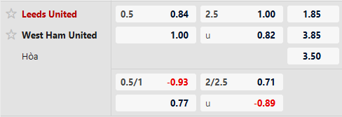 Thông tin tỷ lệ kèo bóng đá Leeds vs West Ham: