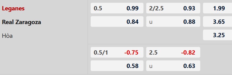 Thông tin tỷ lệ kèo Leganes vs Zaragoza: