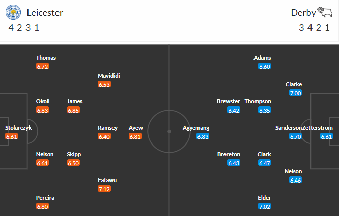 - Leicester thắng 7, hòa 2, thua 1 trong 10 trận gặp Derby County gần đây.