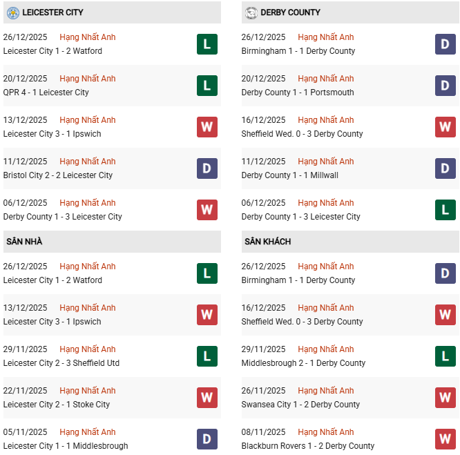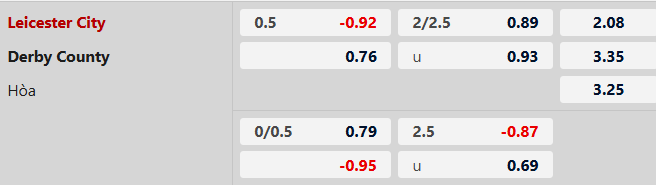 Leicester gặp khó trong khâu ghi bàn khi chỉ ghi tối đa 1 bàn sau 2 trận gần nhất. Hàng công Derby County cũng chưa thực sự bùng nổ, khi 4/5 trận gần đây họ chỉ ghi không quá 1 bàn. Tuy nhiên, hàng thủ Leicester lại đang khá lỏng lẻo, nhận ít nhất 2 bàn thua ở 3/5 trận vừa qua, khiến khả năng thủng lưới trước Derby ở trận này là rất cao.