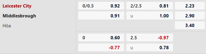 Thông tin tỷ lệ kèo Leicester vs Middlesbrough: