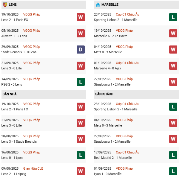 Thống kê phong độ Lens vs Marseille: