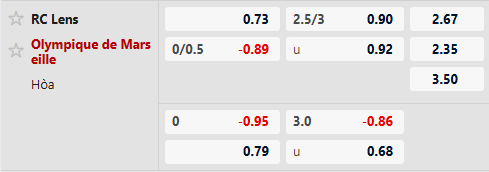 Thành tích đối đầu Lens vs Marseille: