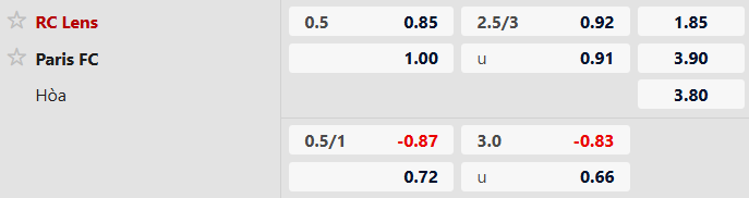 Tỷ lệ kèo Châu Á chấp 1/2 bàn thời điểm ban đầu phản ánh đúng thực lực 2 đội thời điểm hiện tại, nhưng lại trở thành rào cản đối với Lens. Với tương quan lực lượng, thành tích đối đầu và phong độ gần đây, rất có thể trận này sẽ khép lại mà không đội nào giành chiến thắng. Trong quá khứ, những trận cầu giữa Lens và Paris FC thường diễn ra cân bằng, kịch tính.