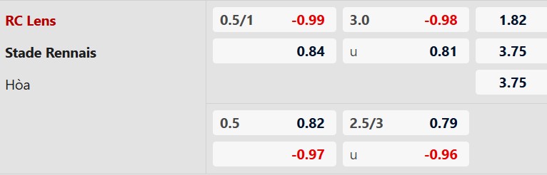 Tối đa 1 bàn hiệp 1: Cả 8 cuộc chạm trán gần nhất, 5/8 trận gần đây của Lens và 7 trận vừa qua của Rennes đều có không quá 1 bàn thắng trong hiệp 1. Ngoài ra, 5/6 trận sân nhà gần đây của Lens và 7/8 chuyến làm khách vừa qua của Rennes đều có kịch bản tương tự trong hiệp đầu.