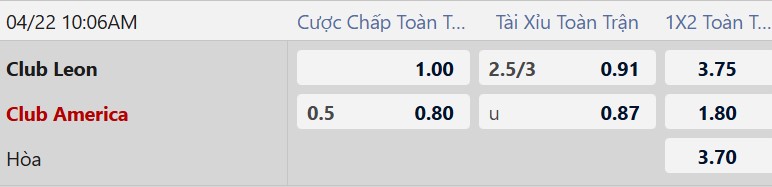 Dù được đánh giá cao hơn trận này với kèo chấp 1/2 bàn, nhưng với phong độ hiện tại, Club America không phải lựa chọn an toàn. Leon đang thăng hoa và có lợi thế sân nhà, đủ sức tạo ra bất ngờ.