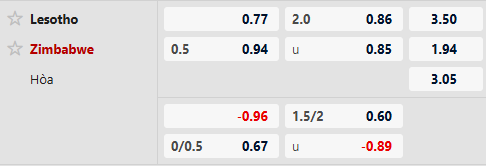 Thông tin tỷ lệ Lesotho vs Zimbabwe: