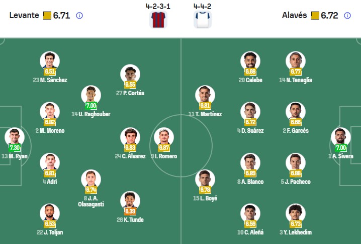 Đội hình dự kiến Levante vs Alaves: