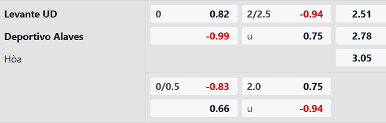 Thông tin tỷ lệ bóng đá Levante vs Alaves: