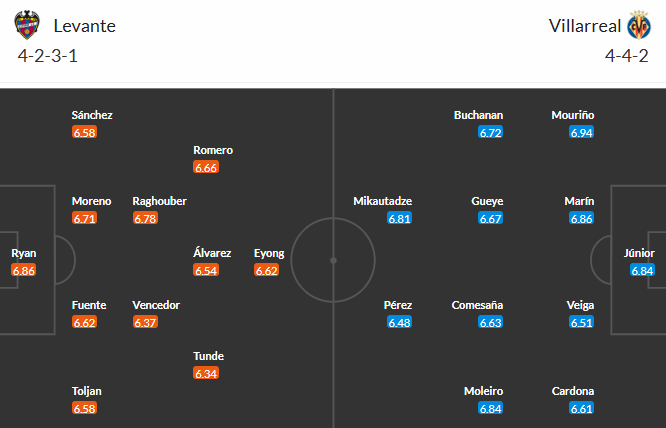 Đội hình dự kiến Levante vs Villarreal: