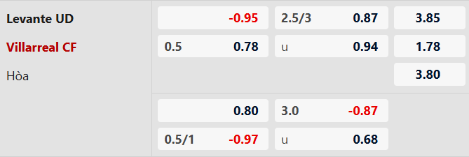 Soi kèo châu Á Levante vs Villarreal: