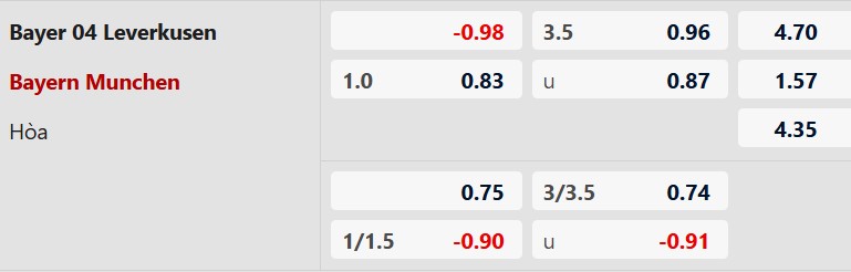 Thông tin tỷ lệ kèo bóng đá Leverkusen vs Bayern Munich: