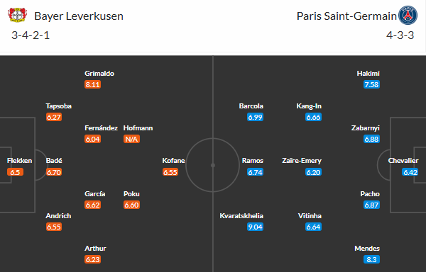 Đội hình dự kiến Leverkusen vs PSG:
