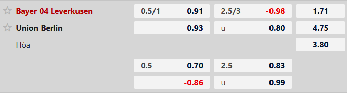 Soi kèo tài xỉu Leverkusen vs Union Berlin: