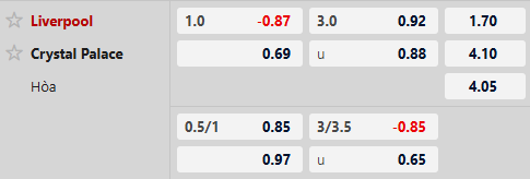 Thông tin tỷ lệ kèo bóng đá Liverpool vs Crystal Palace: