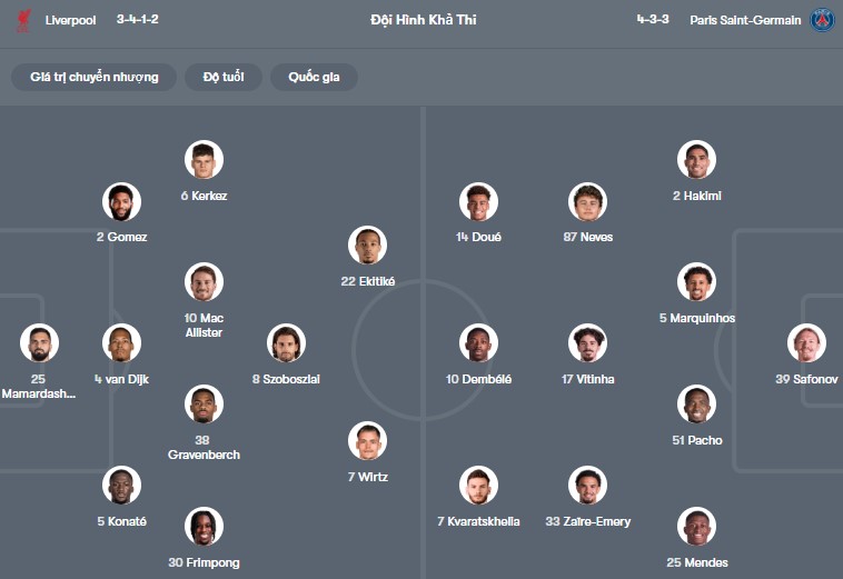 Thông tin tỷ lệ kèo bóng đá Liverpool vs PSG: