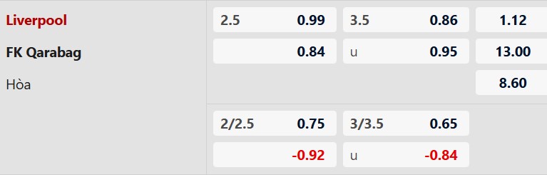 Soi kèo châu Á Liverpool vs Qarabag: