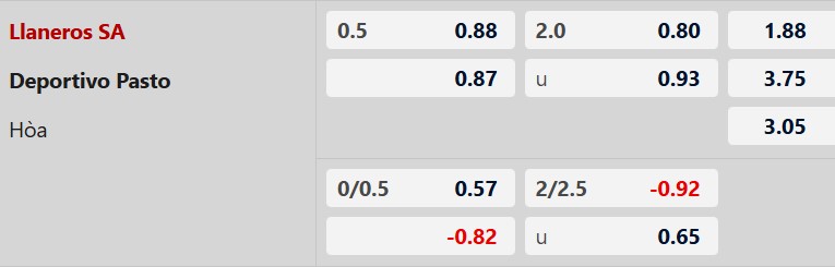 Lựa chọn tốt nhất: Llaneros -1/2 cả trận