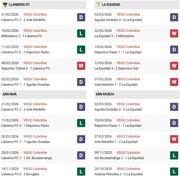 - Trên sân nhà, Llaneros thắng 2, hòa 2 trước Inter Bogota.