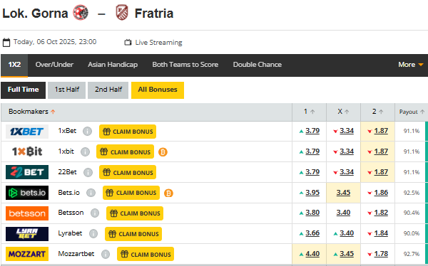 Dù Lokomotiv Gorna có lợi thế sân nhà và khả năng phòng ngự đáng nể, nhưng Fratria đang duy trì phong độ quá cao và là đội có khả năng thắng kèo cao hơn.
