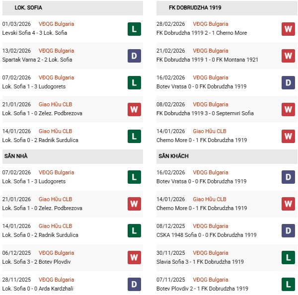 Thống kê phong độ Lokomotiv Sofia vs Dobrudzha: