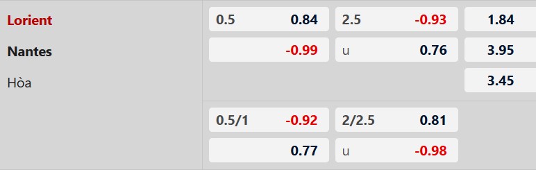 Thông tin tỷ lệ cược Lorient vs Nantes: