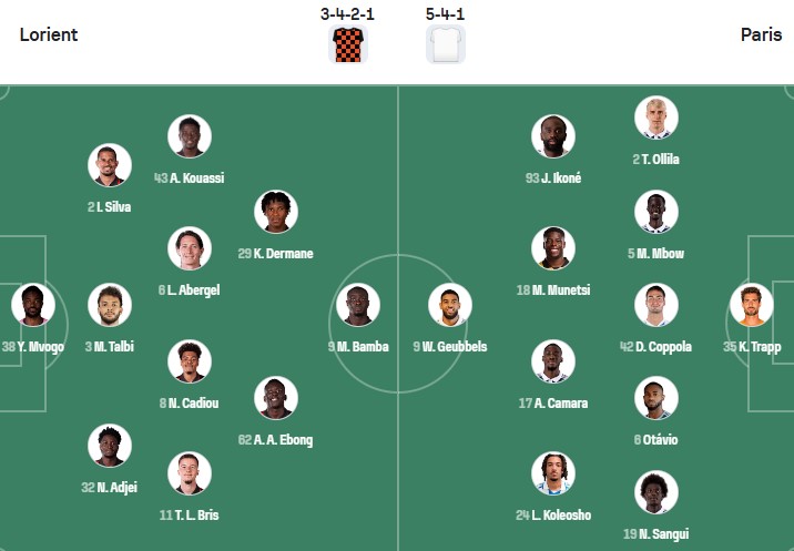 Lorient: Faye, Yongwa, Fadiga, Katseris, Tosin chấn thương.
