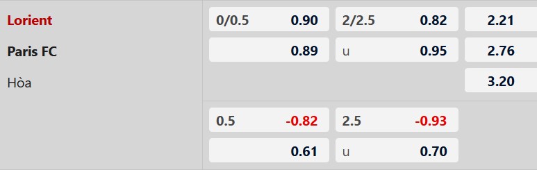 Thông tin tỷ lệ cược Lorient vs Paris FC: