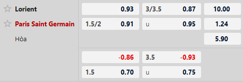 Thông tin tỷ lệ kèo bóng đá Lorient vs PSG: