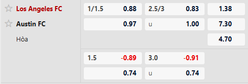 Thông tin tỷ lệ Los Angeles FC vs Austin:
