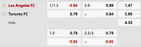 Sàn giao dịch châu Á ghi nhận mức kèo Los Angeles FC chấp 1 1/4 trái, tỷ lệ mà ở trận đối đầu gần nhất xuất hiện họ chỉ có thể giành 1 điểm trước Toronto, trong lần đầu tiên hai đội chạm trán nhau ở MLS hồi năm 2019. Với thành tích thắng kèo châu Á 7/8 trận gần đây, Toronto đang sẵn sàng để gây khó dễ cho Los Angeles FC.