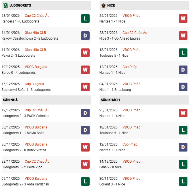 Cần nhấn mạnh rằng trên sân nhà ở các sân chơi châu Âu mùa này (vòng sơ loại Champions League, sơ loại Europa League và vòng phân hạng Europa League), đội bóng của HLV Per-Mathias Hogmo mới chỉ để thua duy nhất 1 lần trên sân nhà, đó là thất bại 0-2 trước Betis ngày 3/10/2025. Còn lại, họ thắng 3 và hòa 3 trận. Vì thế, Ludogorets Razgrad tràn ngập tự tin bước vào cuộc đối đầu với Nice.