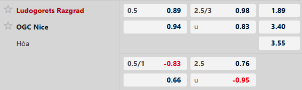 Soi kèo châu á Ludogorets Razgrad vs Nice:
