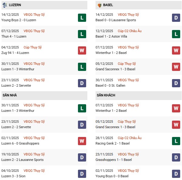NHẬN ĐỊNH LUZERN VS BASEL, 02H30 NGÀY 18/12 HÔM NAY