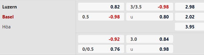 Thông tin tỷ lệ kèo Luzern vs Basel: