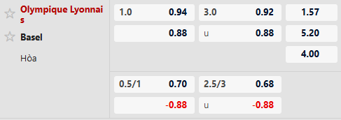 Thông tin tỷ lệ bóng đá Lyon vs Basel: