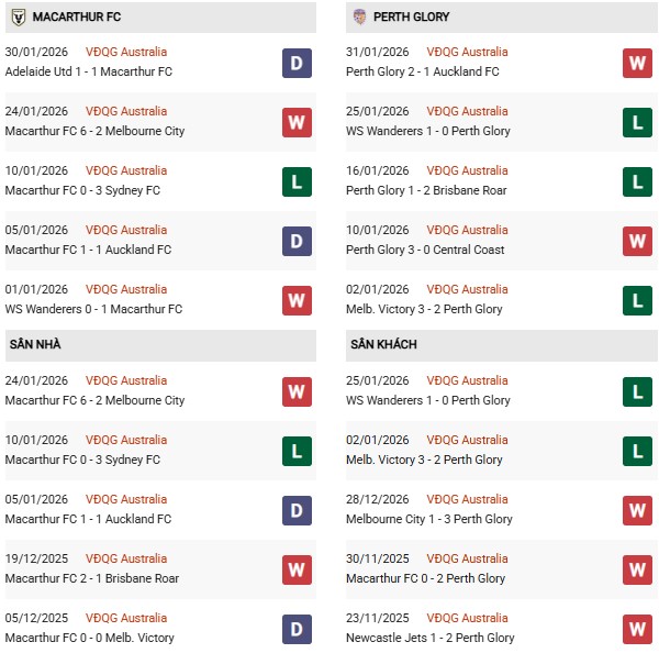 - Trên sân nhà, Macarthur thắng 4, thua 1 trước Perth Glory.