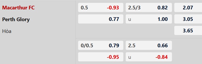 Thông tin tỷ lệ Macarthur vs Perth Glory: