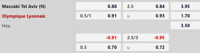 Soi kèo tài xỉu Maccabi Tel Aviv vs Lyon: