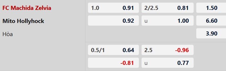 Thông tin tỷ lệ kèo Machida vs Mito HollyHock: